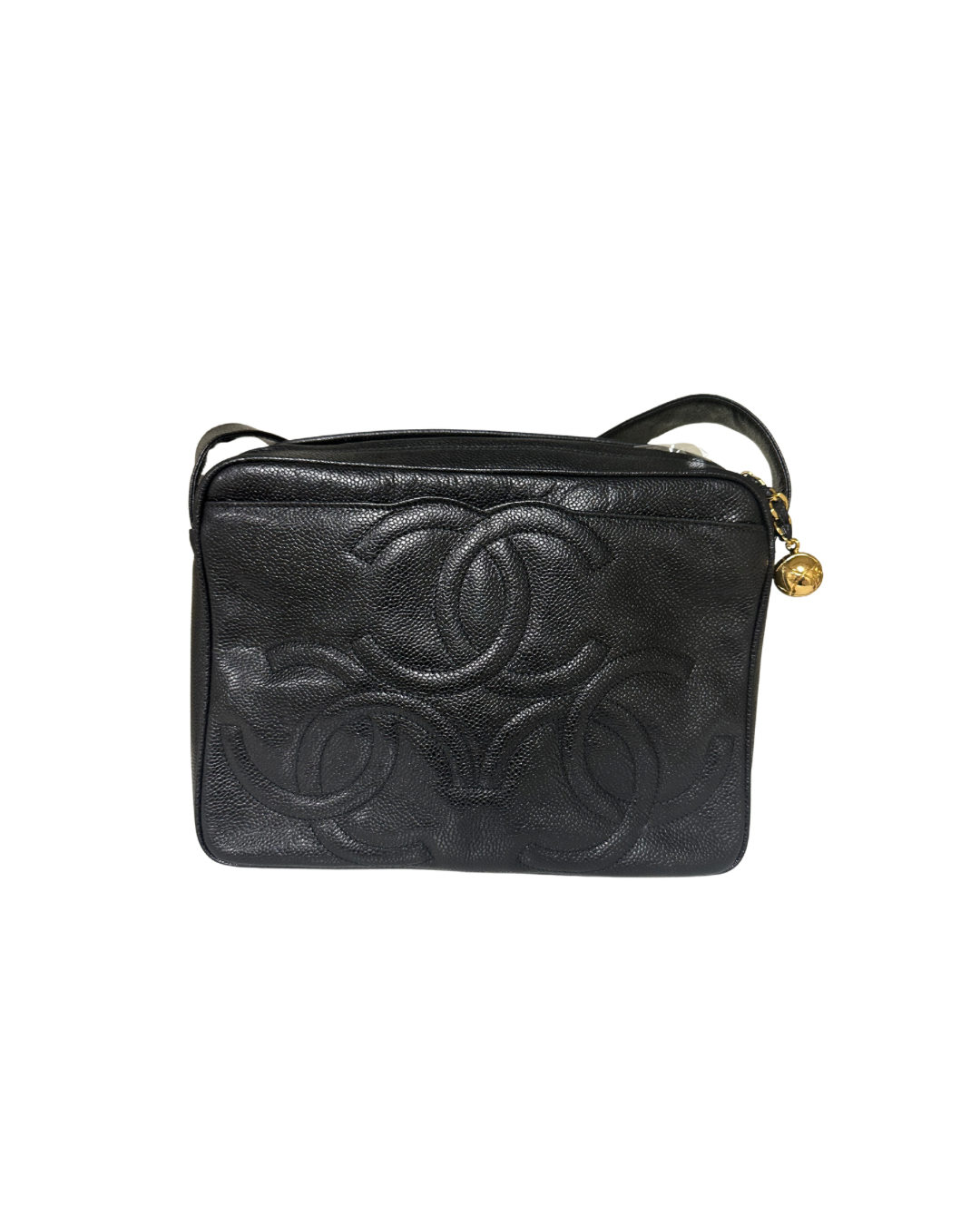 Chanel Vintage Triple Coco Cross Black Caviar 24k gold-Plated